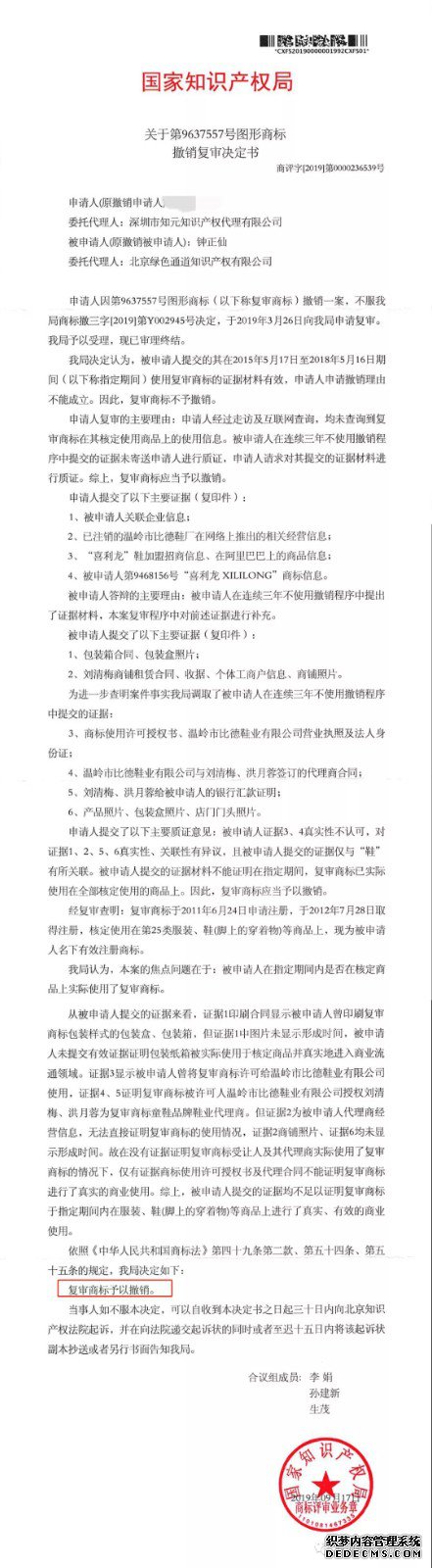 本期我们想借第9637557号商标被撤销的全过程来说明撤三申请被驳回这件事并不可怕,因为仍可以通过复审、诉讼等程序达到将商标撤销的目的。